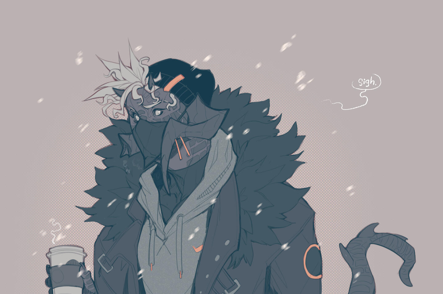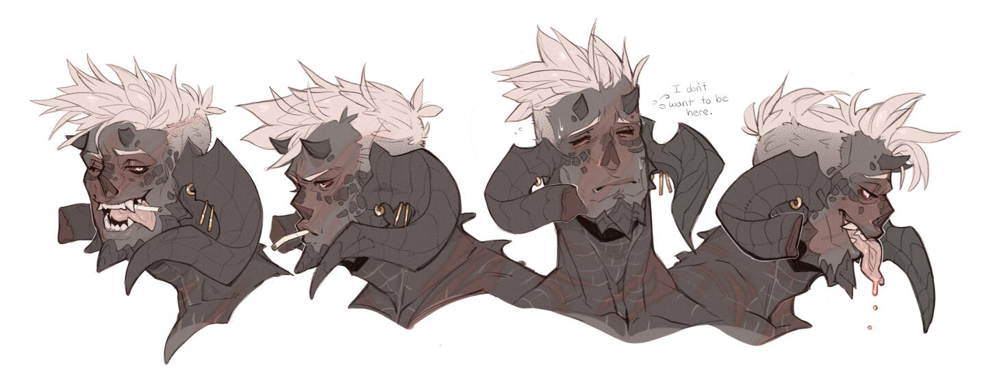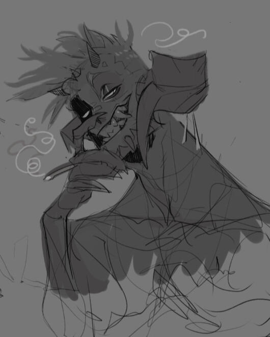 If you hang around Sourie for extended periods of time, you may notice the subtle, seemingly involuntary twitches that plague him. An occasional clench of snaggled teeth , the quaveringly tight grip of a clawed fist beneath the table, or his occasional labored exhale and darting glances towards the nearest exit of whatever room he's currently occupying.